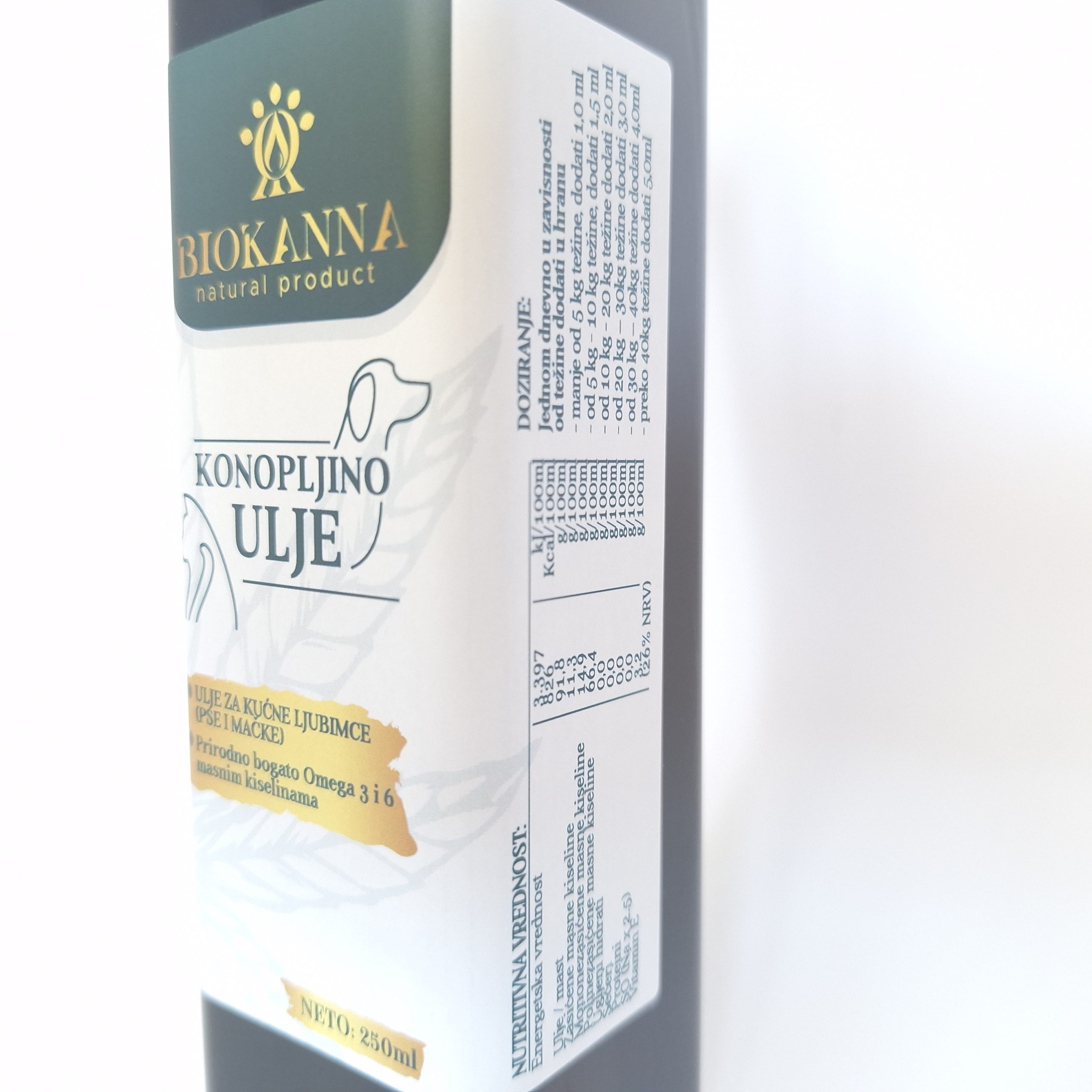 Ulje od semena  konoplje treba davati psima i mačkama zavisno od težini. Preporučujemo jednom dnevno: