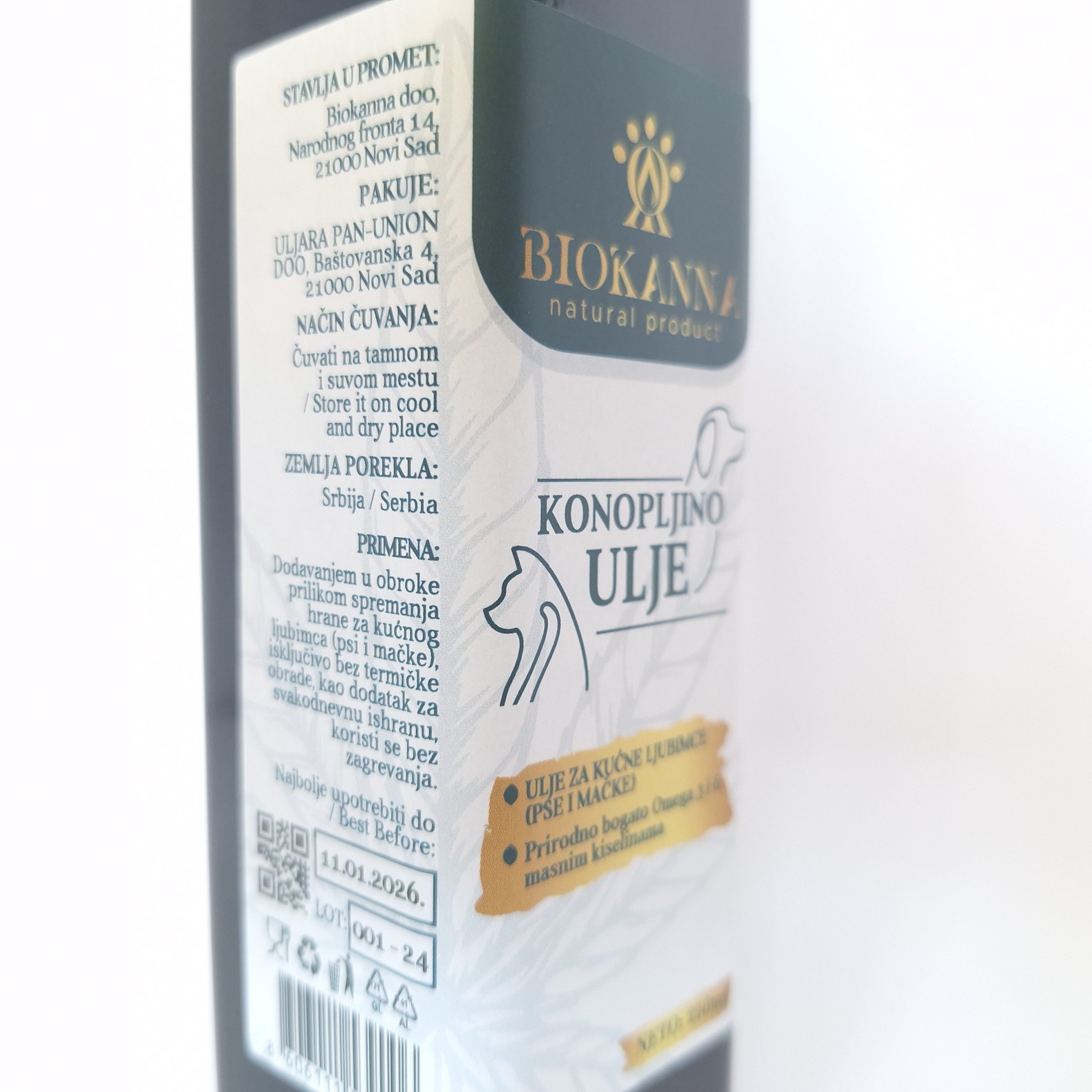 Ulje dobijeno procesom hladnog ceđenja i mehaničkog filtriranja iz semenki industrijske konoplje (Cannabis sativa L).